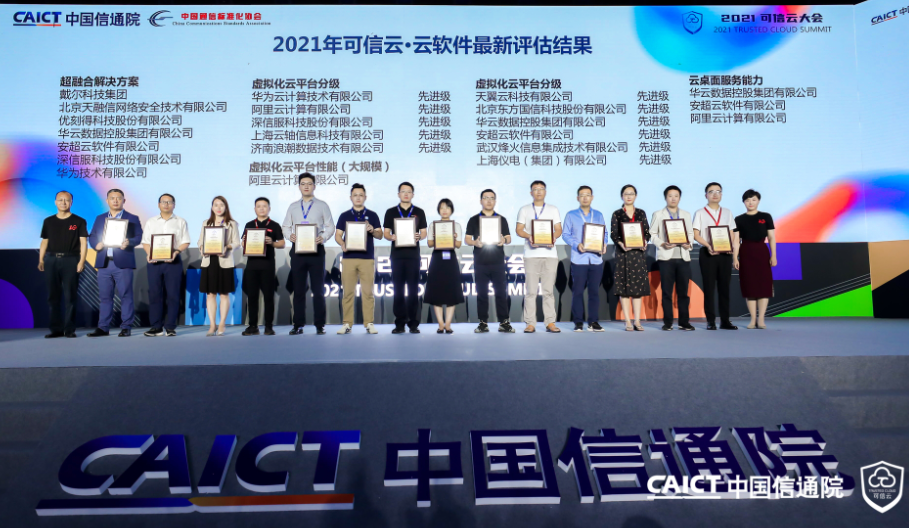 隨后,中國信息通信研究院云計(jì)算與大數(shù)據(jù)研究所所長何寶宏和副所長栗蔚為通過2021年可信云評估的企業(yè)頒發(fā)證書。