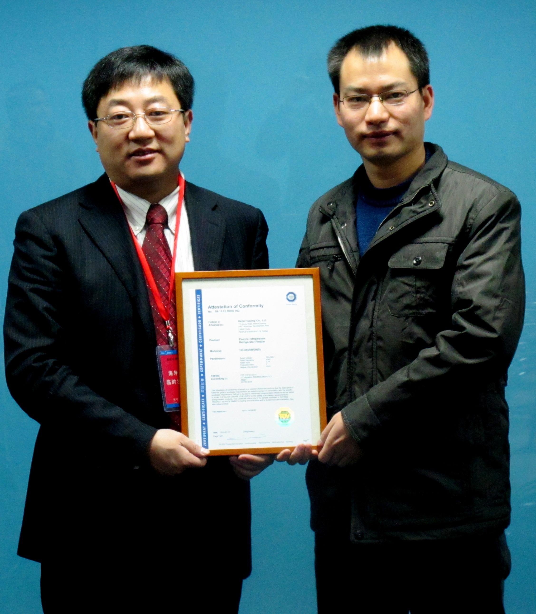 安徽合肥2011年1月21日電 /美通社亞洲/ -- 2011年1月20日, TUV 南德意志集團為美的公司頒發冰箱能效證書。這意味著美的公司生產的冰箱產品滿足生態設計的歐盟法規要求,在歐洲乃至國際市場上銷售時將受到更大認可。TUV 南德意志集團負責江蘇、安徽、湖北、四川等地業務的蔣丹峰先生出席頒證儀式。越來越多的消費者日益重視環境問題,環保意識已經成為具體行動。通過能效認證的產品,亦能為企業的環保績效添力,從而帶來更多商機,達到直接提升產品形象和提高消費者購買意愿的結果。