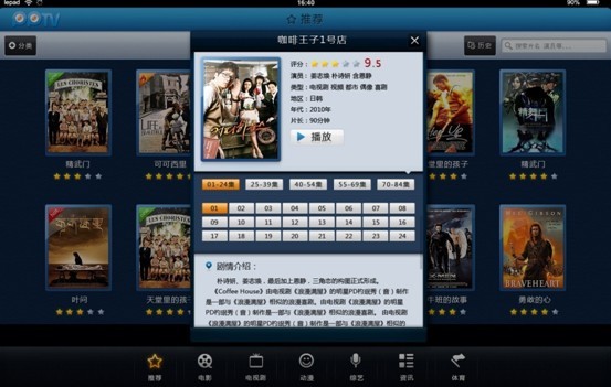 PPTV 網絡電視樂 pad 客戶端界面
