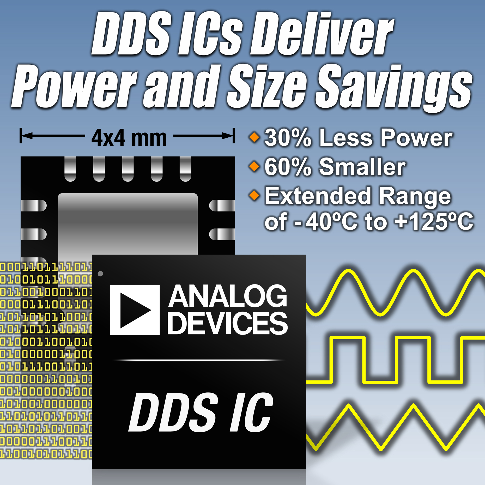 北京2011年4月28日電 /美通社亞洲/ -- Analog Devices, Inc.( http://www.analog.com/zh) (ADI),全球領先的高性能信號處理解決方案供應商,最近推出兩款直接數字頻率合成(DDS) IC AD9838和AD9837。與競爭器件相比,功耗降低30%,尺寸縮小60%,工作在-40ºC至+125ºC的寬溫度范圍。采用較高16 MHz的時鐘速率工作時,AD9838 DDS(http://www.analog.com/zh/AD9838)和AD9837 DDS IC(http://www.analog.com/zh/AD9837)的功耗僅11 mW。新款器件特別適合工業和通信應用,包括傳感器激勵、阻抗頻譜分析儀、電池供電的診斷和通信設備等。