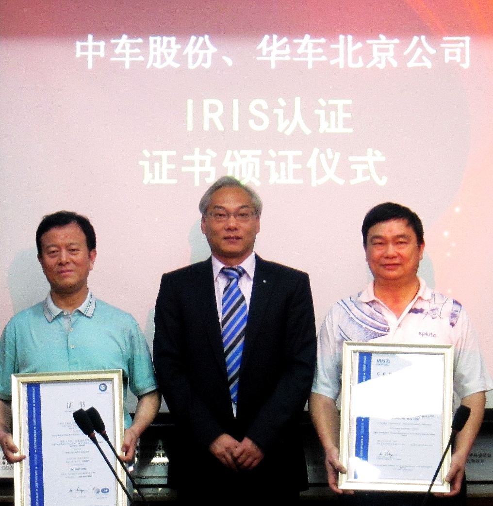 廣州2011年5月16日電 /美通社亞洲/ -- 近期,TUV 南德意志集團(以下簡稱 TUV SUD )與廣州中車軌道交通裝備股份有限公司(以下簡稱中車股份)、廣州中車子公司 -- 華車北京交通裝備有限公司(華車北京)在廣州中車公司舉行了 IRIS 國際鐵路工業標準管理體系的頒證儀式。