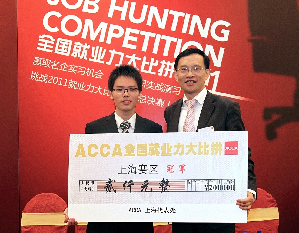 上海2011年5月25日電 /美通社亞洲/ -- 由 ACCA(特許公認會計師公會)主辦的“ACCA 就業力大比拼”上海賽區決賽近日落下帷幕。來自復旦大學、上海交通大學、上海財經大學、浙江大學等高校的20名大學生從華東1300位報名者中脫穎而出進入決賽,爭奪名企公認的“最具就業競爭力選手”的殊榮。最終,復旦大學的牟竹云、華東師范大學的侯詒洋和上海財經大學的胡雪燕分獲冠亞季軍。這三名選手將參加今年6月在廣州舉行的全國總決賽。