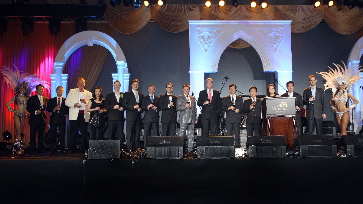 金沙中國有限公司總裁兼營運總裁愛德華.卓思與澳門威尼斯人一眾管理層在“Copacabana慈善晚宴”互相祝酒