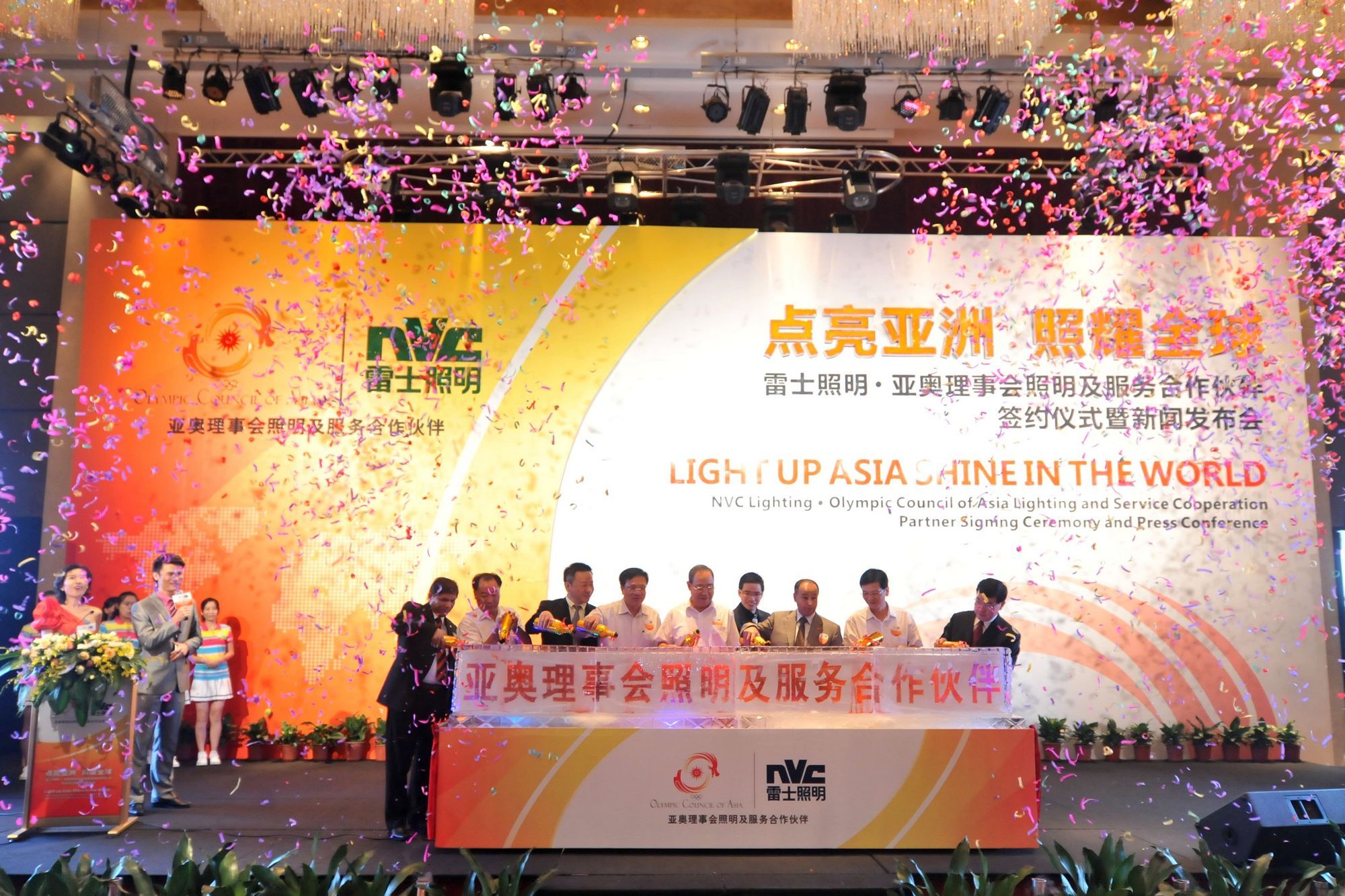 因此,此次簽約活動引起各界的高度重視和支持。亞奧理事會總干事侯賽因,廣東省人民政府副省長佟星,惠州市委副書記、市長李汝求,廣東省政府副秘書長林英,惠州市副市長李選民等省市領導,以及廣州亞組委、天津東亞運動會、沈陽全運會、青島世園會、河南農運會等相關部門領導,雷士照明董事長吳長江等嘉賓出席了當天的簽約儀式。