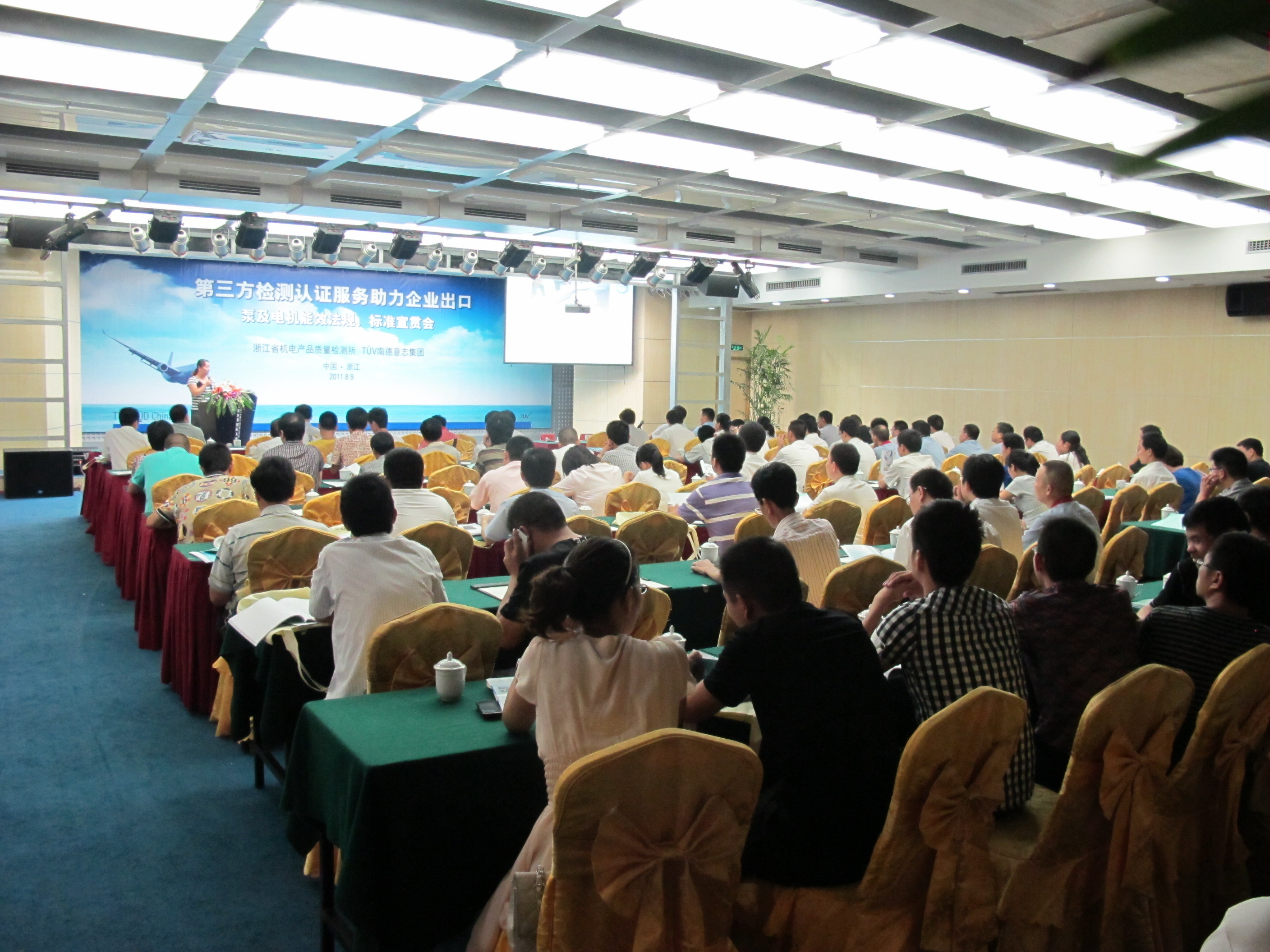 在此背景下,浙江省機電產品質量檢測所與 TUV 南德意志集團共同組織了泵及電機能效法規、標準研討會。在此次會議上,臺州市經委領導及 TUV 南德意志集團專家就我國能源相關政策;歐盟電機能效法規、電機產品的設計要求(EC640/2009);家用電動水泵安全測試;國內中小型三相電機能效標準變化及能效標識實施新辦法及國內泵能效和安全技術標準進行了介紹。旨在增強當地泵和電機產品生產企業的市場競爭力,促進浙江省泵和電機行業的進步和繁榮。