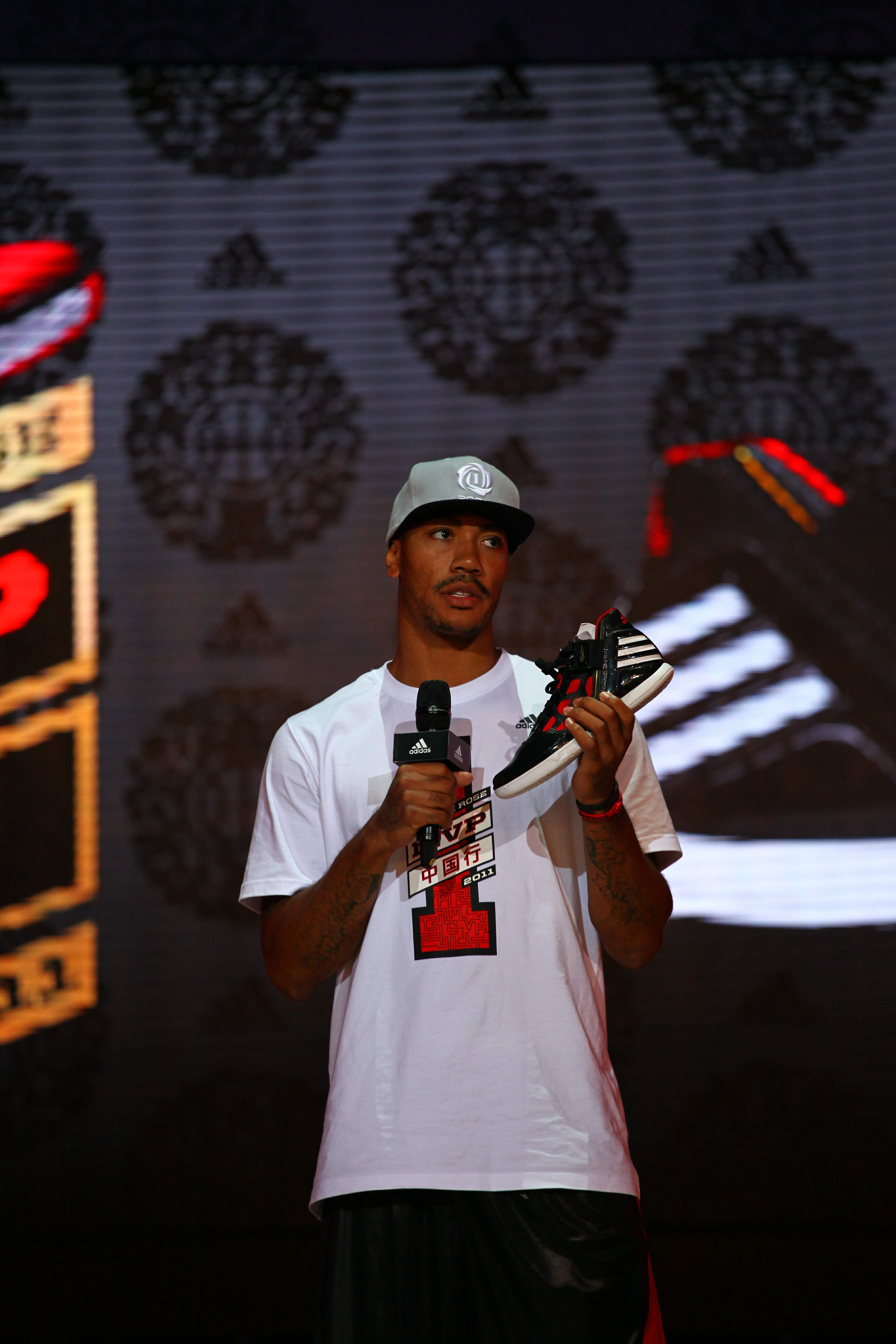 此次中國行期間,羅斯還向球迷們推薦阿迪達斯為其研發的新一代致勝利器 -- 羅斯二代戰靴adizero Rose 2.0。限量版的中國行羅斯二代僅限300雙,為紅色配色,代表芝加哥城市色彩,加配有籃、黑兩種鞋帶,而十月份在國內正式上市的羅斯二代將有多種不同配色,羅斯在現場展示的全黑配色版本就是其中一款。