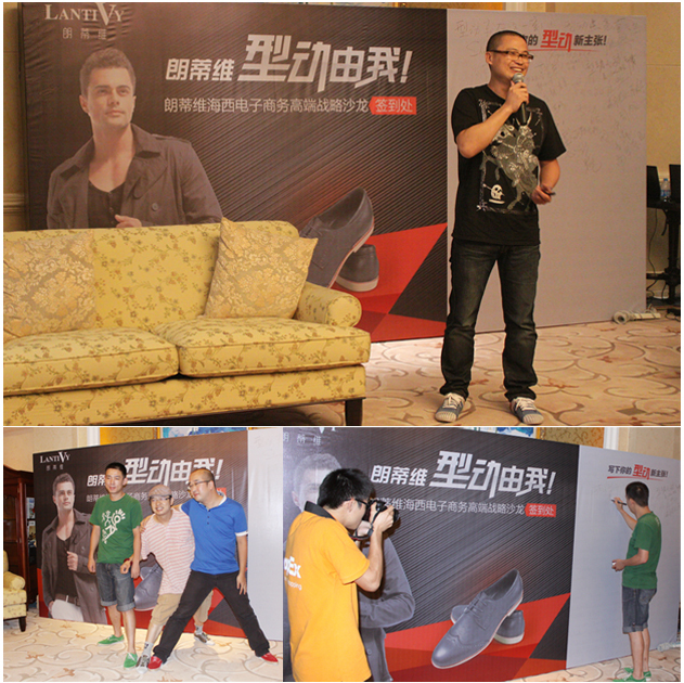 在沙龍開始之前,朗蒂維特別推出“時尚體驗”活動,上海商派副總裁蔡鵬、廈門 B2C 協會秘書長邱靖、商派ECP事業部總經理張蓬、志必達總經理袁黎明、零號男副總黃米米、PBA總監徐炳全等數十位嘉賓穿上朗蒂維時尚男鞋。參會嘉賓現場換上朗蒂維鞋子后,紛紛表示“時尚指數”大增,在朗蒂維“型動由我”的主題墻上寫下自己的主張,大家以朗蒂維的“V”擺出各類造型拍照留念,氣氛相當活躍。