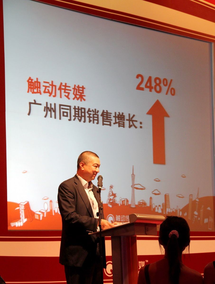 在此背景下,觸動(dòng)傳媒在華南三周年答謝暨發(fā)布會(huì)上宣布了其在廣州地區(qū)的出租車輛簽約數(shù)已超過市場總量的四成,在廣州的裝屏數(shù)達(dá)到5,000臺(tái),深圳的裝屏數(shù)擴(kuò)增到3,000臺(tái),三年來,觸動(dòng)華南的廣告業(yè)務(wù)迅猛發(fā)展,每年實(shí)現(xiàn)翻倍增長。為此,廣東省文化廳副廳長杜佐祥、南方報(bào)業(yè)傳媒集團(tuán)黨委副書記兼紀(jì)委書記丘克軍、廣東商會(huì)常務(wù)副會(huì)長馮鎮(zhèn)南以及廣州市出租車協(xié)會(huì)副會(huì)長楊季良等皆到賀發(fā)布會(huì)。