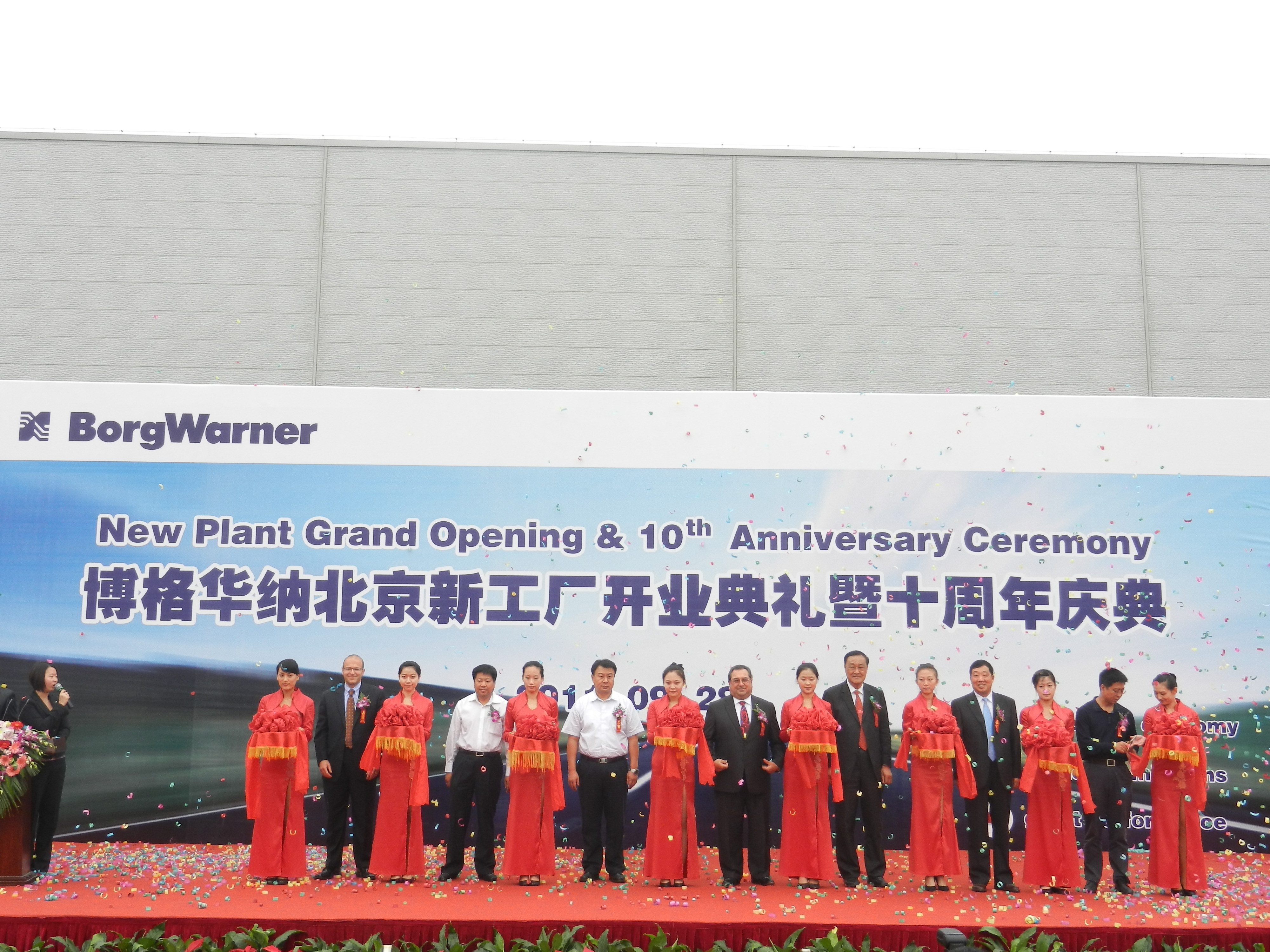 伴隨著博格華納董事會(huì)主席兼首席執(zhí)行官 Mr. Tim Manganello 先生熱情洋溢的致辭,博格華納北京新工廠開業(yè)典禮暨十周年慶典拉開序幕。Tim Manganello 先生自豪地宣布:“通過十年的不懈努力,北京博格華納成長(zhǎng)為中國(guó)市場(chǎng)上較大的分動(dòng)器生產(chǎn)企業(yè)。這是以博格華納獨(dú)有的方式 -- 領(lǐng)先的技術(shù)、質(zhì)量、生產(chǎn)和安全在中國(guó)取得成功的又一典范。博格華納會(huì)秉承與客戶合作的理念,未來將先進(jìn)的技術(shù)引入中國(guó),與中國(guó)客戶共同成長(zhǎng)。”
