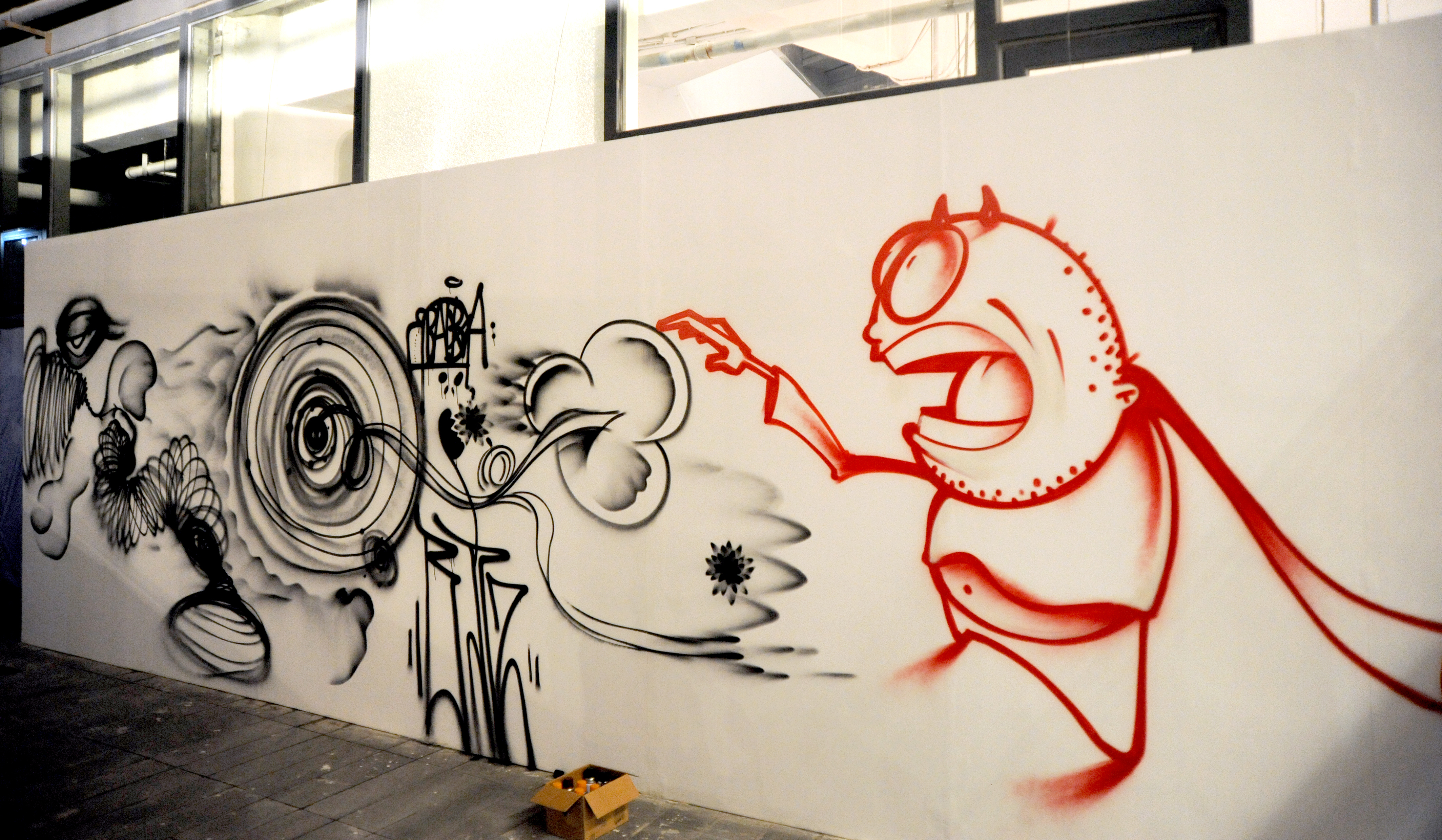 紅毯儀式后,所有活動來賓進入主展廳,一同欣賞了本次藝術展的所有潮流展品,以及活動專為主贊助商諾基亞N9設計制作的藝術裝置“云聚.云散”。北京二十二院街藝術區策劃總監高原Gary、黑松藝術企劃總經理嬉皮Hippie(趙竹松)兩位作為2011瑪克思潮哮藝術展主要策展人分別上臺致辭,并向來賓介紹了瑪克思潮哮活動品牌的緣起理念。連凱andrew作為本次參展藝術家代表也表達了自己對“瑪克思潮哮”的期待和見解。隨后,連凱andrew、李璨琛Samlee、米原康正real、高原Gary、嬉皮Hippie五人在臺上與臺下眾嘉賓共同舉杯歡慶,并表達對2012瑪克思潮哮藝術展的期待。在活動現場,來自法國的涂鴉藝術家CEET與北京噴子成員SOOS,在長達10米的涂鴉墻上盡情表達創作靈感,現場觀眾無不驚嘆他們創意性的潮流表達。