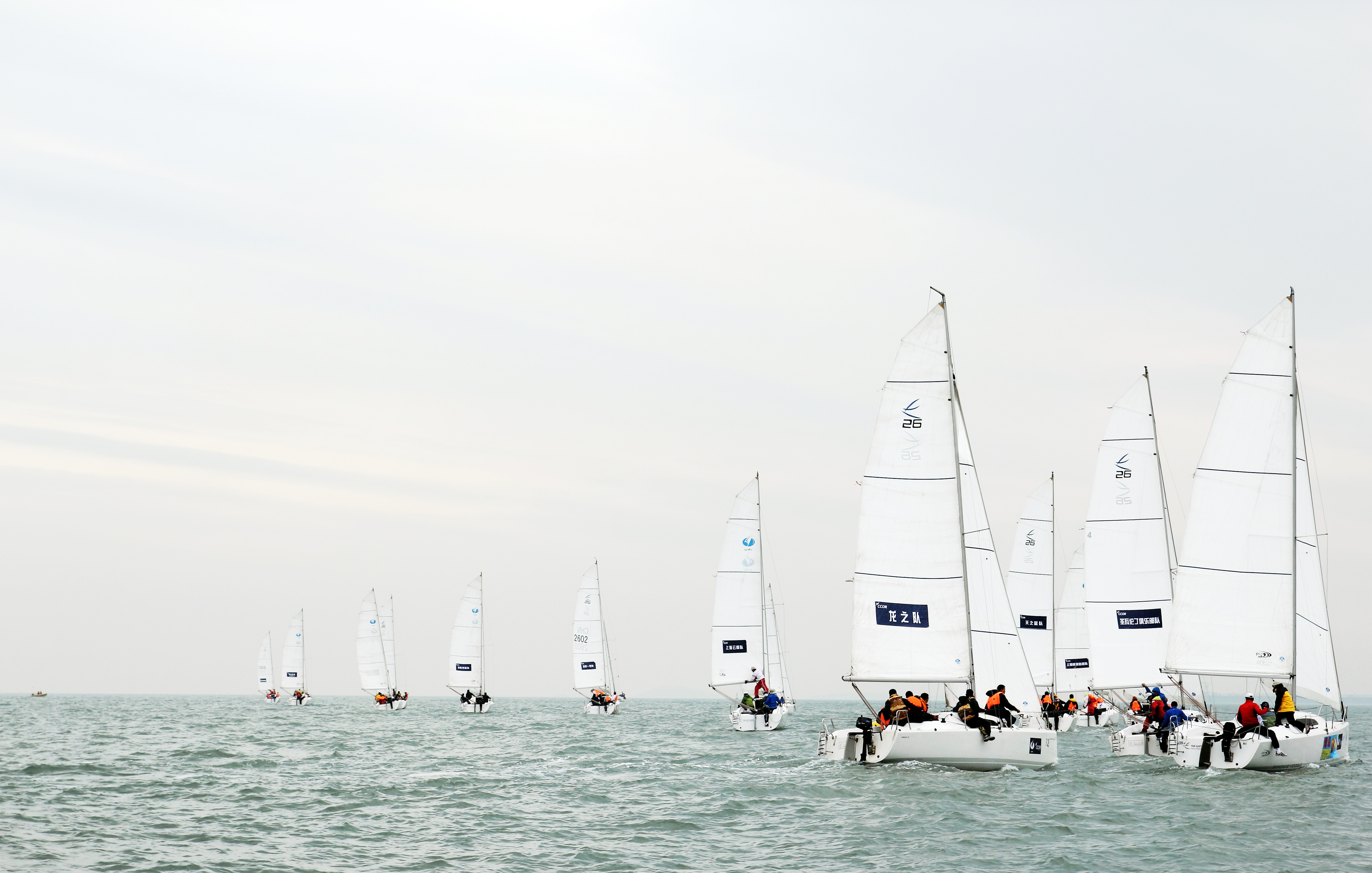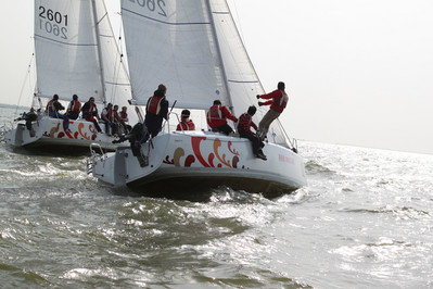 青島中國。2011年5月19-22日。城市俱樂部公開賽,奧林匹克帆船中心。10條統(tǒng)一組別 琺伊26帆船比賽。琺伊26是一條統(tǒng)一設(shè)計(jì)的龍骨帆船,8米長(zhǎng),可升降龍骨。由上海琺伊玻璃鋼船艇有限公司制造,SIMONIS VOODG 設(shè)計(jì)公司設(shè)計(jì)。更多信息,請(qǐng)登錄www.fareastboats.com