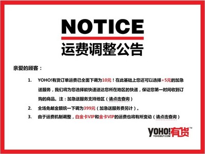 北京2011年11月10日電 /美通社亞洲/ -- 電商價格戰持續不斷,借著“世紀光關節”的噱頭,各購物網站的促銷力度再次升級。消費者面對數以萬計的“白菜價”商品已然挑花了眼,購物欲一次次被商家“牽著鼻子走”。依然持有理智的消費者則保持觀望,“我看重的是這些東西的質量、發貨速度、售后服務等是否能像其價格一樣給力?尤其是網購衣物、鞋帽,一定不能被價格沖昏了頭”,一位經常在網上買衣服的消費者如是說。潮流購物網站YOHO!有貨也在11月推出了一系列優惠活動,相比其他電商的“低價誘惑”,YOHO!有貨針對其用戶的特點在促銷活動上出新招,堅持“穿衣不撞衫”、“做活動亦不撞衫”。