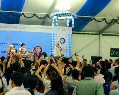 藍白相間的大帳篷、十月節的傳統長凳、鮮釀而成的啤酒、艷麗的民俗服裝,完整的巴伐利亞風情就這樣在深圳“TUV SUD 之夜”的啤酒節活動上演了。期間,啤酒比賽的吶喊聲、德國游戲的歡笑聲和歡快的德國樂聲,把數百位來自不同文化的人,齊齊融在了滿滿的德國風情中,共享一夜的啤酒盛會。