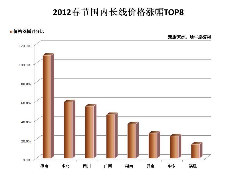 每年春節(jié)期間,多數(shù)旅游熱門方向都會有較大幅度的價格上漲,今年“春游”也不例外,多數(shù)熱門方向環(huán)比漲幅都在30%以上,部分方向漲幅甚至高達80%或出現(xiàn)翻番?!皟r格上漲對市民的出游熱情影響不大,如今年上海出發(fā)至澳洲新西蘭方向的高端線路漲幅達到了71.4%,上海出發(fā)至日本方向的高端線路上漲近58%,但出游人數(shù)卻不降反增。”途牛旅游網度假產品部總監(jiān)魏斌對市民出境游熱情表示看好。