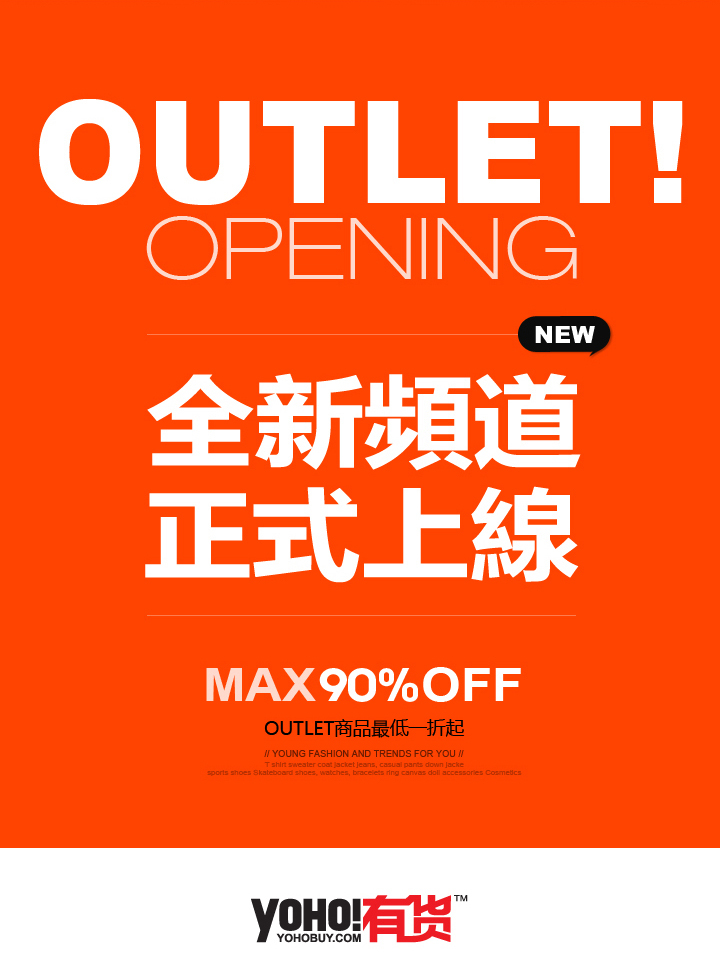 作為潮流先驅的YOHO!有貨,除了引領了文化潮流消費的理念之外,也首次將奧特萊斯的概念引入到電子商務領域。隨著奧特萊斯頻道的上線,YOHO!有貨將運用奧特萊斯的三件法寶讓中國的年輕消費者為之瘋狂:一是馳名世界的著名潮牌;二是以1-6折銷售的超低價格誘惑;三是YOHO!有貨不一樣的潮流購物體驗,足不出戶,盡享潮流。