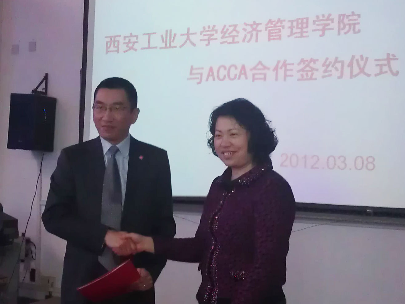 北京2012年3月13日電 /美通社亞洲/ -- 3月8日下午,“西安工業大學經濟管理學院與ACCA合作簽約儀式”在西安工業大學經濟管理學院舉行。ACCA北京代表處首席代表于翔天先生與經濟管理學院院長李純青教授、會計學系主任史璇副教授等進行了親切的會談并簽署了正式合作協議。根據協議,經濟管理學院將ACCA國際財會資格課程嵌入到會計學專業本科教學中,計劃于2012年開始招收第一期ACCA方向班學員,培養緊缺的國際化高級財會人才。
