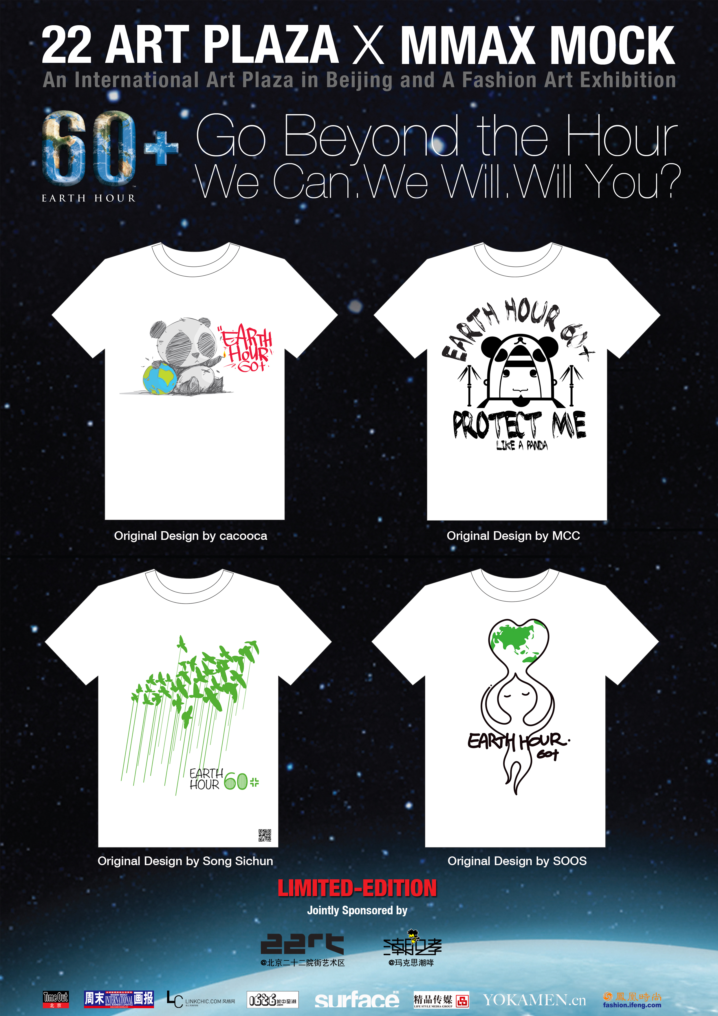 北京2012年3月31日電 /美通社亞洲/ -- 2012年“地球一小時”在三月份的最后一個星期六再次席卷全球。北京二十二院街藝術區與瑪克思潮哮藝術項目合作,聯合國內四位一線潮流藝術家,以“每個人心中都有一位環保家”為主題,共同推出“60+”系列限量環保T恤;將通過@北京二十二院街藝術區官方微博以及各個合作渠道向公眾免費發放。每一件T恤都通過自己獨特的形式,表達了藝術家對環保的熱情和期盼,并通過圖案提醒人們,一個細小的改變,每個人都可以成為一名環保家。
