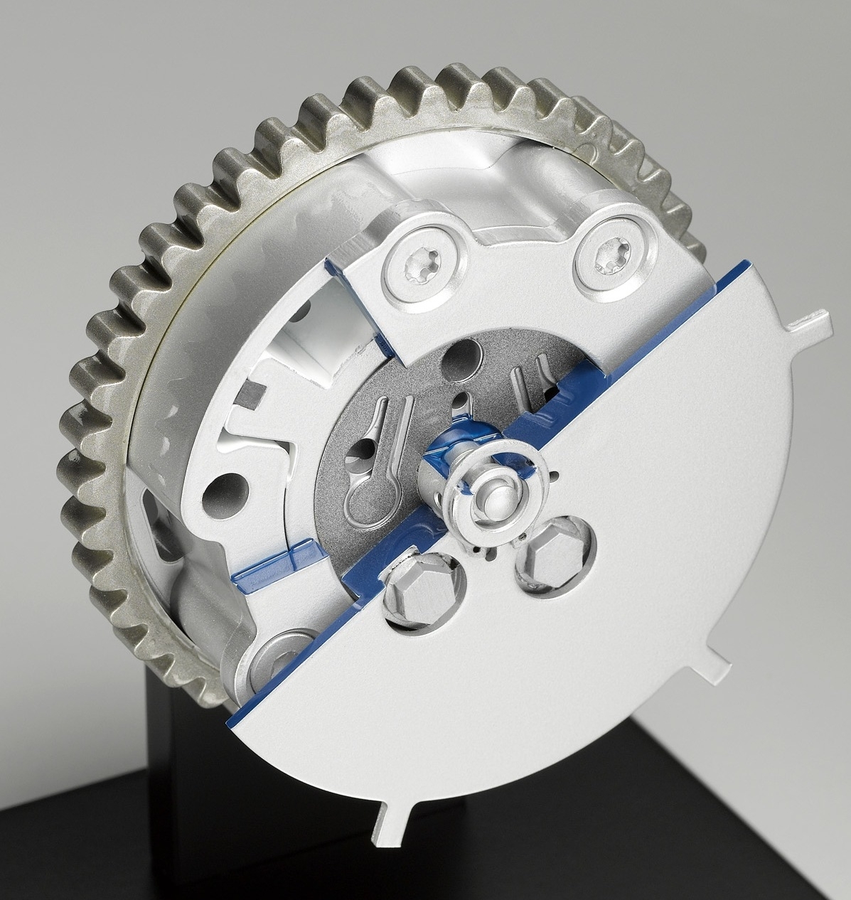博格華納在本屆車展首次亮相了可變氣門正時技術,通過調整進氣、排氣的量,和進排氣閥開合時間,角度使進入的空氣量達到較佳,提高燃燒效率。但傳統的該技術損耗了發動機的大量能量,使得發動機轉速扭矩不足。