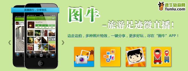“圖?!笔謾C(jī)客戶(hù)端的誕生,將途牛旅游網(wǎng)“途牛社區(qū)”分享功能拓展到了移動(dòng)互聯(lián)網(wǎng)。截至2012年3月中旬,途牛社區(qū)總計(jì)整合了近10萬(wàn)篇旅游攻略,通過(guò)途牛出游的旅游達(dá)人在途牛社區(qū)總計(jì)發(fā)表游記超過(guò)4000篇。旅游攻略和游記的足跡,踏遍了全球的每一個(gè)引人入勝的角落。新近誕生的“圖牛”APP,除可即時(shí)拍照?qǐng)D片上傳和分享游記,更自帶了LOMO、X-Pro、炫彩、老照片等十余種濾鏡,輕松玩轉(zhuǎn)圖片美化效果。一鍵分享功能,讓你的微博、flickr、人人網(wǎng)等好友能實(shí)時(shí)分享美景;“圖?!备茉O(shè)置拍照地點(diǎn)坐標(biāo)信息,并可查看周?chē)挠脩?hù)和景點(diǎn)圖片,讓旅游分享隨心所欲。