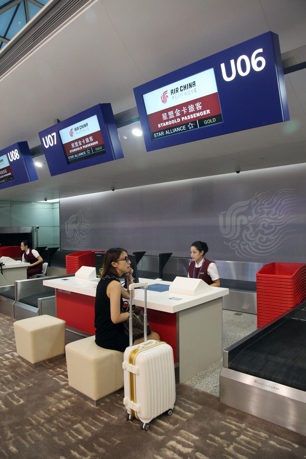 在成都雙流國際機場二號航站樓,國航可利用的專屬資源有了大幅提升,最明顯的是專屬值機柜臺由23個增長至60個,值機柜臺的增加將有效減少旅客排隊等候的現象,緩解客流高峰,改善旅客的出行體驗。二號航站樓一共設置了28條安檢通道,其中16條是面向國航旅客的專屬通道,安檢通道數量的增加將有效地緩解高峰期旅客安檢排隊的情況,節省旅客的等候時間。同時,16條國航專屬安檢通道距離值機島和停機位的距離都非常短,旅客們在辦理完乘機手續之后只需步行很短的距離便可到達安檢通道,而通過安檢后,更可直接面對近機位登機口,即便是遠機位也遠比一號航站樓近得多,免去了旅客在乘機過程中長途步行的麻煩。
