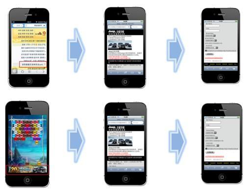 Jeep 以男性為主的受眾人群特性,力美廣告精選新聞、財經、資訊、體育等手機 WAP 及APP媒體,借助力美廣告平臺優勢,采取機型定向技術,鎖定高端智能機手機用戶,精準覆蓋目標受眾。針對 WAP 網站,潛在用戶可點擊 Banner 后進入全屏廣告,并可登陸試駕頁面,填寫相關信息,申請試駕;針對 APP 內置廣告,潛在用戶可點擊 Banner 后直接跳轉至活動移動頁面。