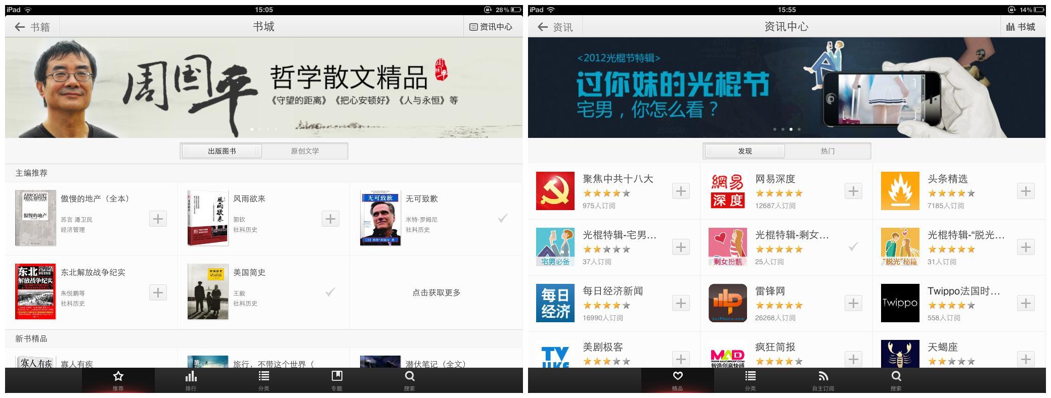 書城與資訊中心:滿足不同用戶需求(左:書城 右:資訊中心)