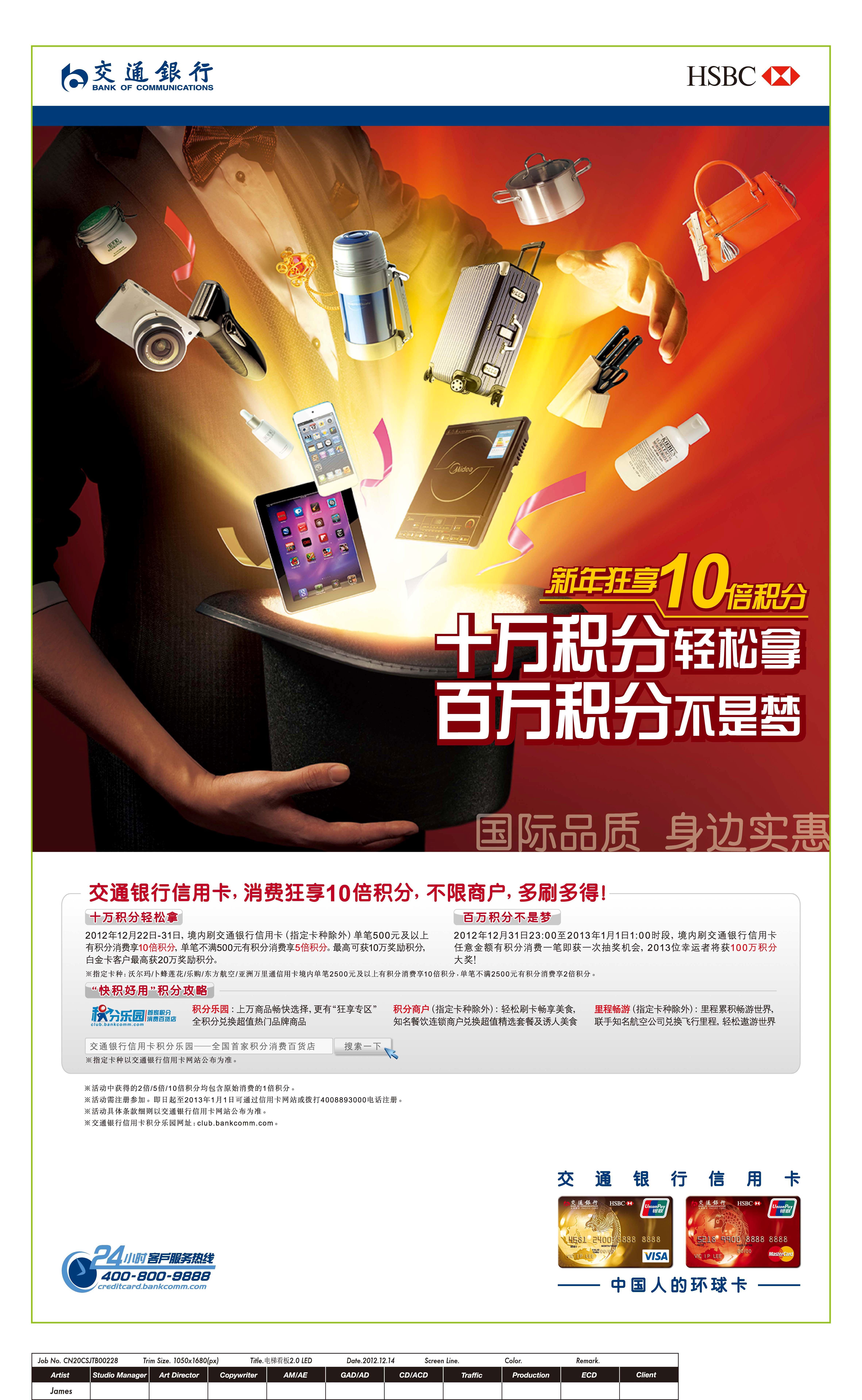 交通銀行信用卡“10萬積分輕松拿 百萬積分不是夢”活動,從12月22日起全面開啟,至12月31日,所有交通銀行信用卡持卡人境內有積分消費單筆消費500元以上,即可享10倍積分,較高可獲10萬積分;單筆消費500元以下,即享5倍積分(部分聯名卡除外),真正實現積分的加速積累。