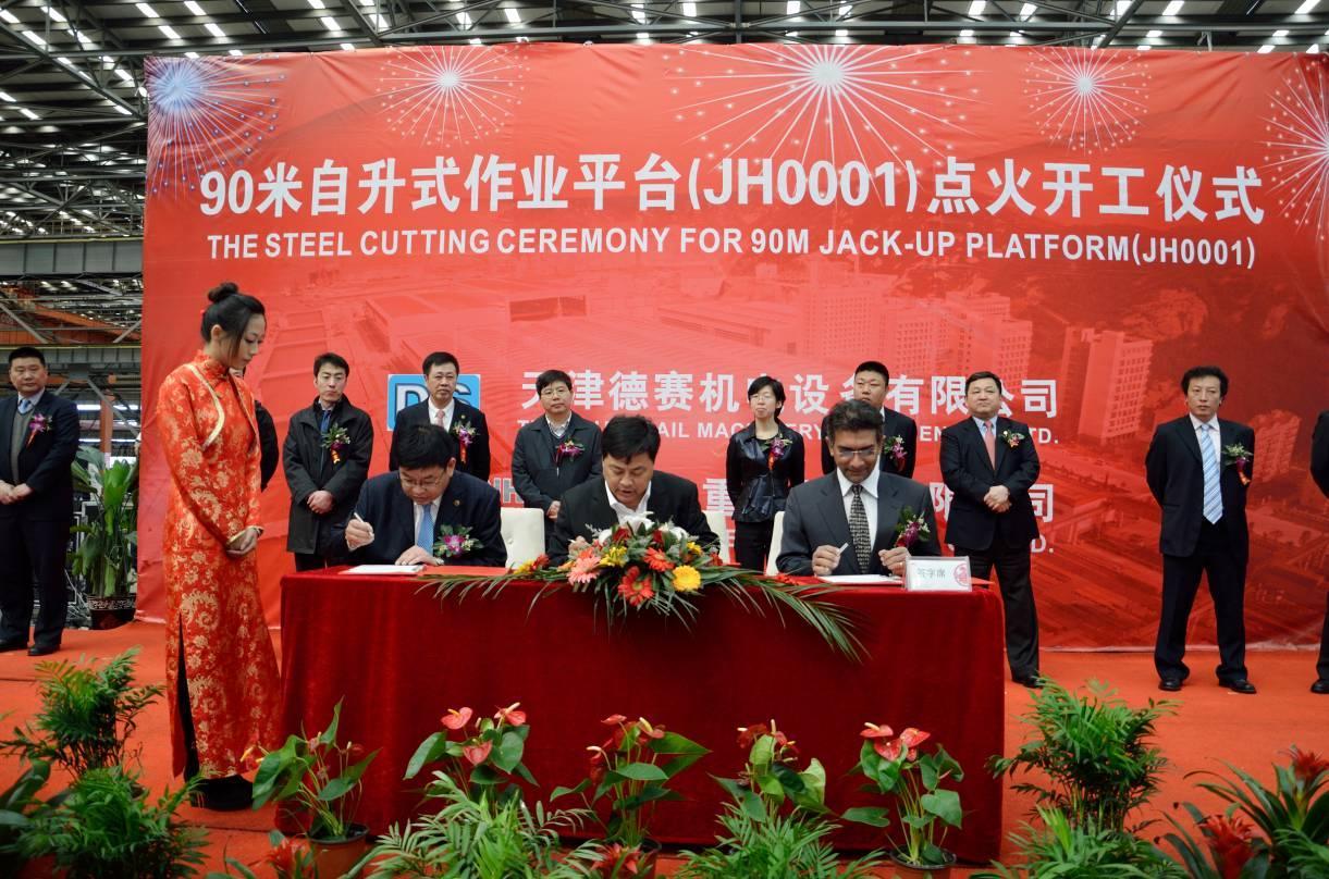 舟山2013年3月22日電 /美通社/ -- 3月21日上午9:58分,隨著等離子切割機(jī)下火花四濺,金海重工股份有限公司首制90米海工自升式作業(yè)平臺正式投產(chǎn)。該平臺是目前國內(nèi)第一座具有完全自主知識產(chǎn)權(quán)帶動力定位的自升式平臺,達(dá)到世界先進(jìn)水平。本次點火開工標(biāo)志著該公司已成功進(jìn)入海工產(chǎn)品市場。天津德賽船東代表、ABS船檢代表、金海重工干部員工等200余人參加了儀式。