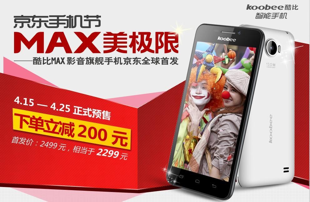 4月15日,koobee四核旗艦MAX將在京東開啟全球首發。首發期間,在京東商城預訂koobee MAX下單立減200元,相當于享受售價2299元。