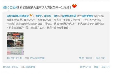同時,傲游還及時推出“雅安地震尋人”的微博公益活動,災區群眾可以關注傲游云瀏覽器新浪官方微博,通過回復,進行人工求助和尋找親人等。關心災區傲游用戶,還可以通過關注傲游云瀏覽器的官方微博了解更多災區情況。