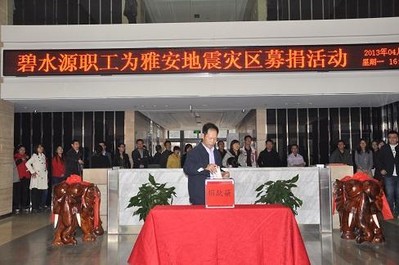 四川雅安蘆山地震發(fā)生后,中國扶貧基金會(huì)立刻緊急啟動(dòng)應(yīng)急救災(zāi)程序。地震發(fā)生兩小時(shí)后,聯(lián)合騰訊公益慈善基金會(huì)發(fā)布雅安地震緊急救援樂捐項(xiàng)目,聯(lián)合新浪網(wǎng)發(fā)布有你救有力量—雅安地震緊急救援倡議書,下午三點(diǎn)決定向地震災(zāi)區(qū)捐贈(zèng)100萬元,下午五點(diǎn)追加到200萬元用于采購緊急救援物資,并派出緊急救援隊(duì)前往蘆山評估災(zāi)情、采購發(fā)放救災(zāi)物資,當(dāng)晚24點(diǎn),緊急救援隊(duì)到達(dá)災(zāi)區(qū),立刻向當(dāng)?shù)睾献骰锇榱私鉃?zāi)區(qū)救援情況、受災(zāi)情況及災(zāi)區(qū)需求。中國扶貧基金會(huì)四川蘆山救援行動(dòng)啟動(dòng)后,許多愛心企業(yè)和公眾積極響應(yīng),踴躍捐款捐物,大力支持一線救災(zāi)工作。恒大集團(tuán)第一時(shí)間與中國扶貧基金會(huì)溝通,了解了災(zāi)情和災(zāi)民需求后率先捐贈(zèng)2000萬元;英特爾捐款1000萬元并將與中國扶貧基金會(huì)創(chuàng)新模式,探索企業(yè)捐款在救災(zāi)和重建過程中更有效、更有價(jià)值的使用;三六一度(中國)捐贈(zèng)800萬元、安利捐贈(zèng)500萬元、如新(中國)捐贈(zèng)1000萬元、天喔食品集團(tuán)捐贈(zèng)500萬元物資;愛心公眾通過騰訊樂捐、新浪微公益、支付寶公益、返利網(wǎng)、短信捐贈(zèng)平臺(tái)、淘寶官方店、銀行賬戶等捐贈(zèng)平臺(tái)捐款225.6萬元。截至4月23日早上九點(diǎn),社會(huì)各界捐款捐物超過1億元。新聞發(fā)布會(huì)上,中國扶貧基金會(huì)段應(yīng)碧會(huì)長,副會(huì)長江紹高、王行最接受了愛心企業(yè)和個(gè)人的捐贈(zèng)。