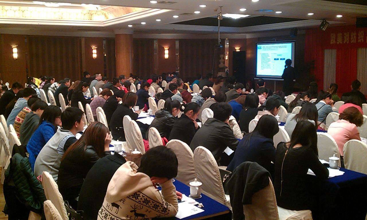 廣州2013年4月27日電 /美通社/ -- 近日,由中國國際貿易促進委員會紹興支會、紹興國際商會主辦,SGS 通標標準技術服務有限公司(以下簡稱 “SGS”)協辦的“歐美市場對紡織品服裝產品安全和技術法規要求綜述”培訓班在紹興王朝大酒店成功舉辦。本次活動旨在幫助紹興紡織企業進一步增強國際市場安全意識,提升風險防范能力,推動企業及產品順利進入國際市場并獲得認可。