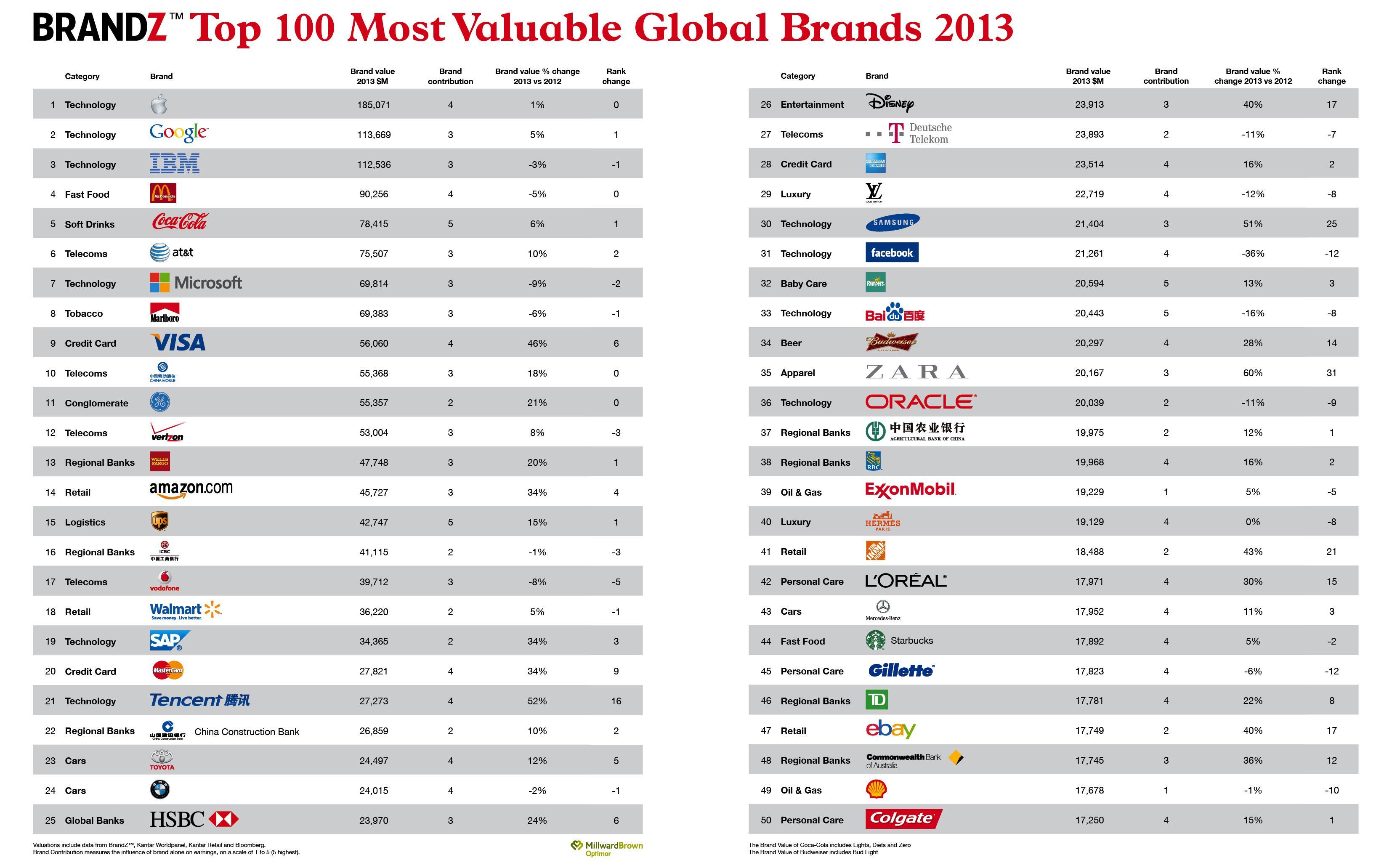 2013 BrandZ 全球最具價值品牌100強榜單