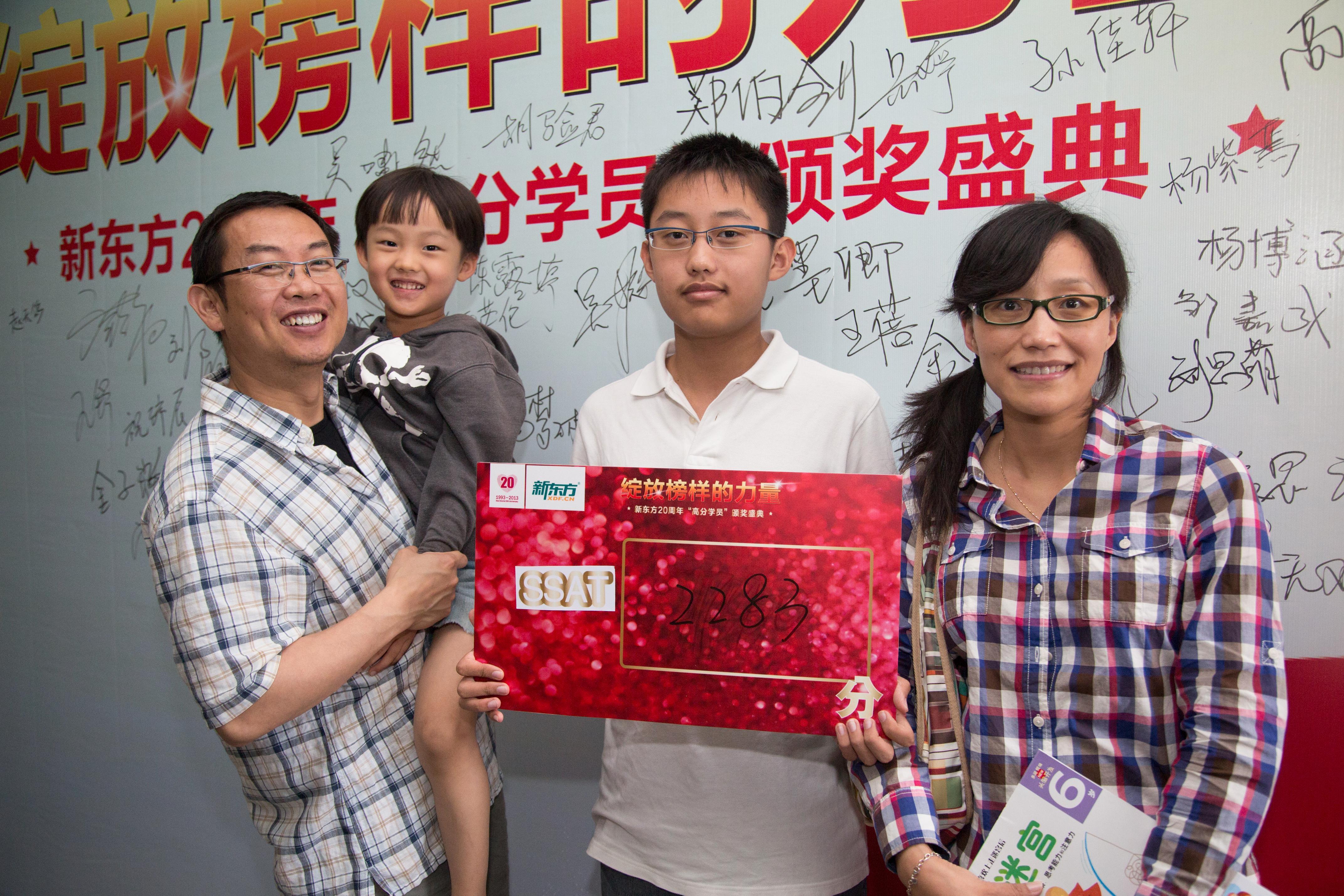 學員獲SSAT2283分,與家長簽名版前留念