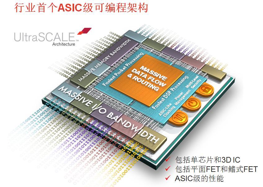 賽靈思UltraScale架構:行業第一個ASIC級可編程架構,可從20nm平面晶體管結構 (planar)工藝向16nm乃至FinFET晶體管技術擴展,從單芯片(monolithic)到3D IC擴展。它不僅能解決整體系統吞吐量擴展限制的問題和時延問題,而且直接應對先進節點芯片性能方面的較大瓶頸問題——互連。