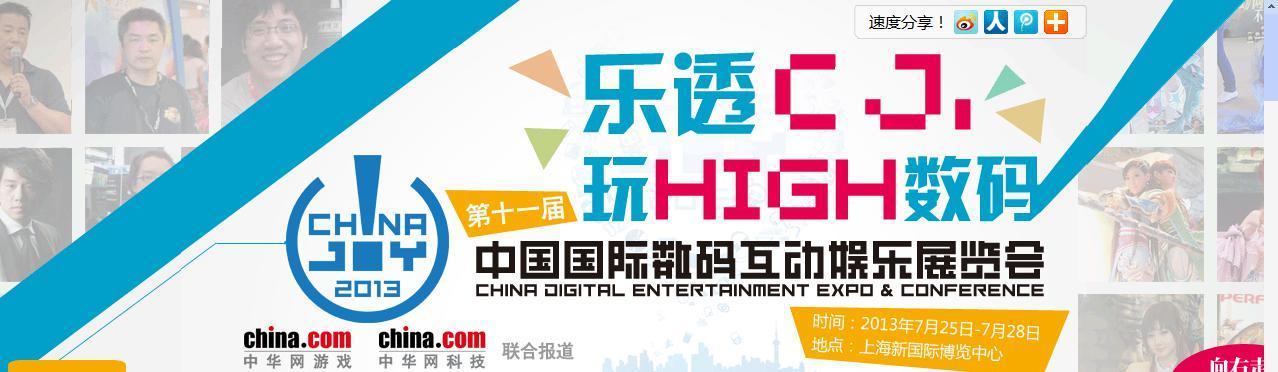 北京2013年7月25日電 /美通社/ -- 第十一屆中國(guó)國(guó)際數(shù)碼互動(dòng)娛樂展覽會(huì)(以下簡(jiǎn)稱ChinaJoy展覽會(huì))開幕式暨高峰論壇7月24日在滬舉行,中華網(wǎng)手機(jī)WAP站(3g.china.com)與中華網(wǎng)游戲頻道、中華網(wǎng)數(shù)碼頻道將強(qiáng)強(qiáng)聯(lián)合進(jìn)行獨(dú)家報(bào)道,讓許多玩家翹首期待的線上互動(dòng)活動(dòng)也已經(jīng)開始。