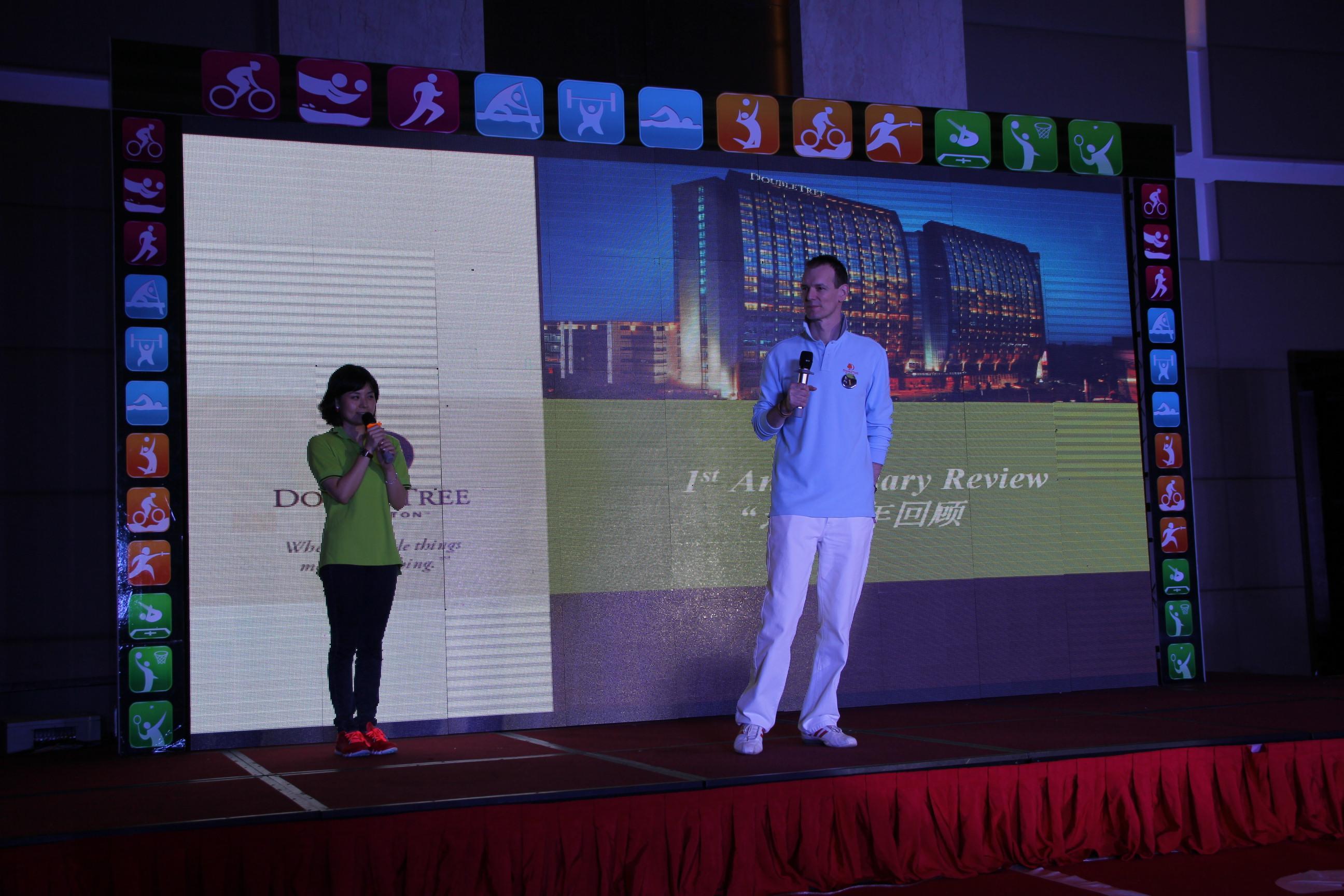 當晚的答謝會晚宴承揚2013第十二屆沈陽全運會的“全民參與,健康生活”的口號,以運動為主題,呈現(xiàn)了一場別開生面的室內運動會。總經(jīng)理莫瑞森先對客戶一年以來的支持與厚愛表達了誠摯謝意,同時回顧了一年來希爾頓逸林發(fā)展的腳步和取得的傲人成績,堅定了客戶們對酒店的信心。