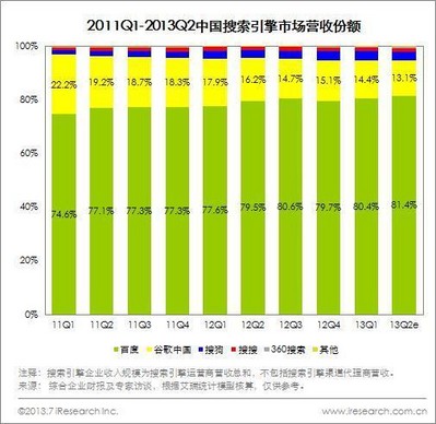 艾瑞咨詢:2013Q2中國(guó)搜索引擎市場(chǎng)規(guī)模92.8億,未來競(jìng)爭(zhēng)將加劇