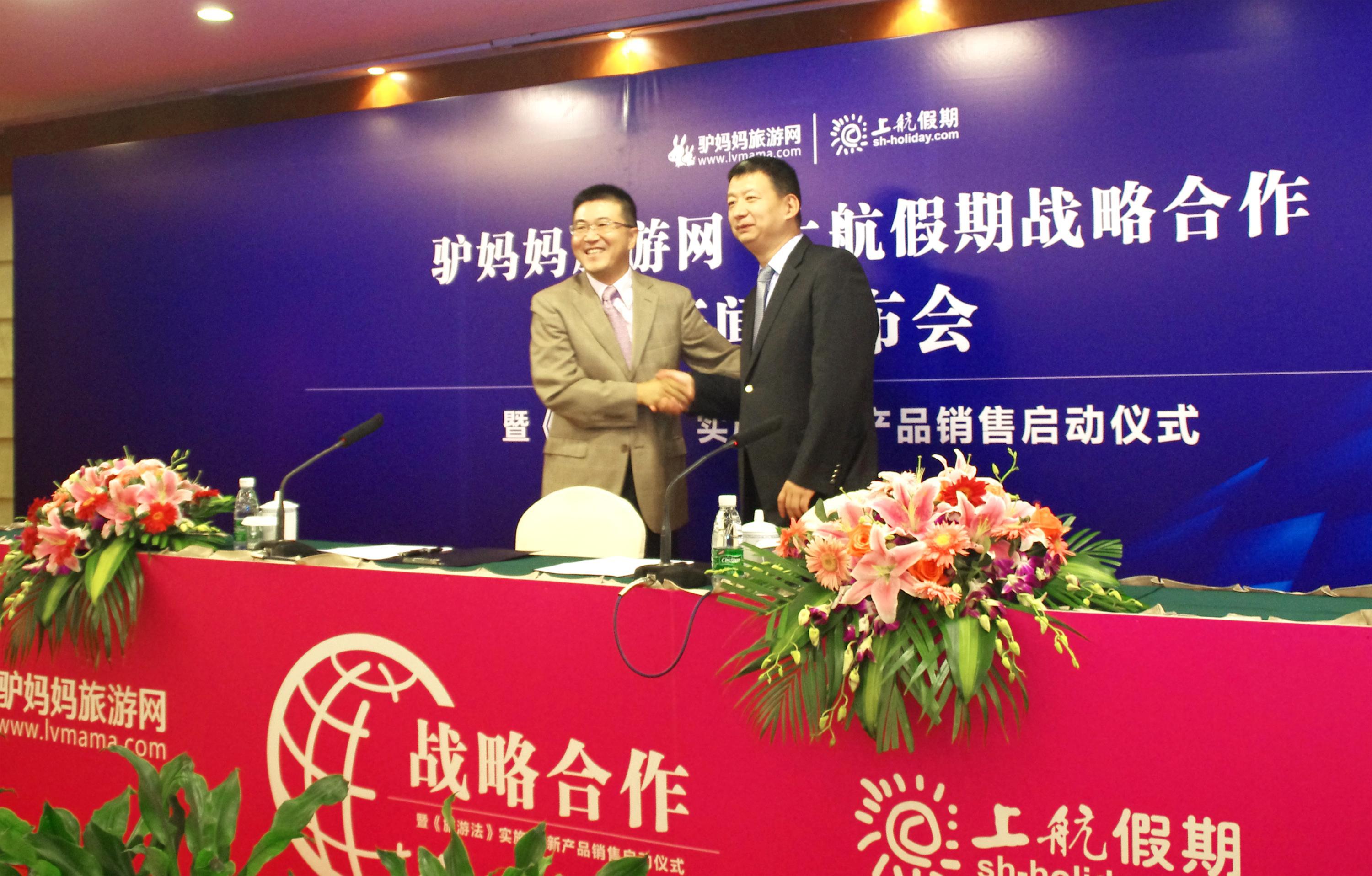 上海和北京2013年9月4日電 /美通社/ -- 為了迎接新的市場(chǎng)變化,率先響應(yīng)《旅游法》,滬上知名的兩大旅游公司:驢媽媽旅游網(wǎng)與上航假期旅行社于9月3日在上海正式簽訂戰(zhàn)略合作協(xié)議,雙方將就新產(chǎn)品研發(fā)、整合營(yíng)銷、銷售服務(wù)等領(lǐng)域進(jìn)行深入的合作,首輪上線的近百款國(guó)內(nèi)游新產(chǎn)品覆蓋北京、四川、云南、海南等全國(guó)熱門(mén)旅游目的地。這意味著傳統(tǒng)的旅行社與日趨發(fā)展的在線旅游,開(kāi)始了新的合作模式。