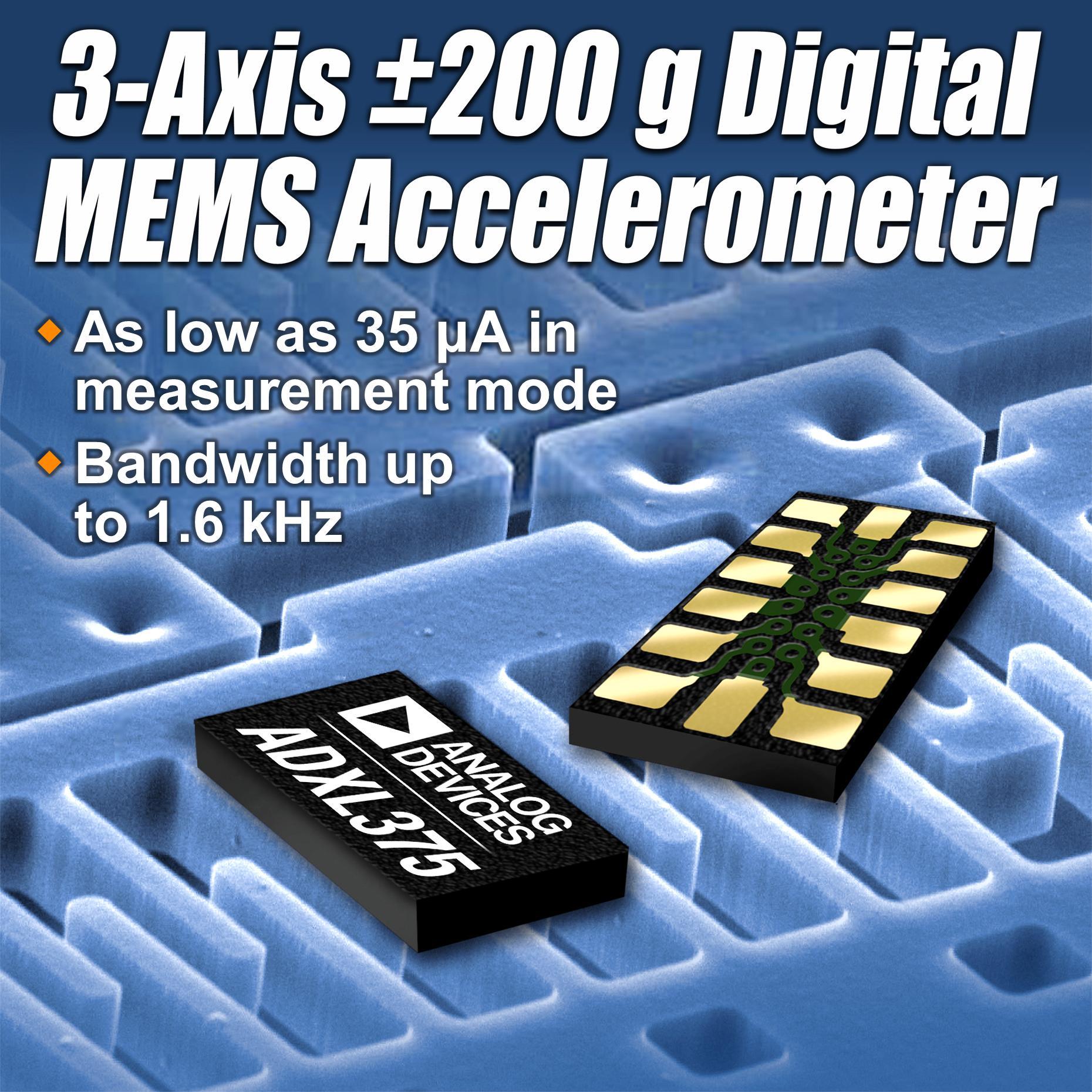 與用于測量高g事件的競爭傳感器相比,ADI公司的ADXL375 200 g數字MEMS加速度計可以提供兩倍以上的帶寬,而功耗卻不到其一半。