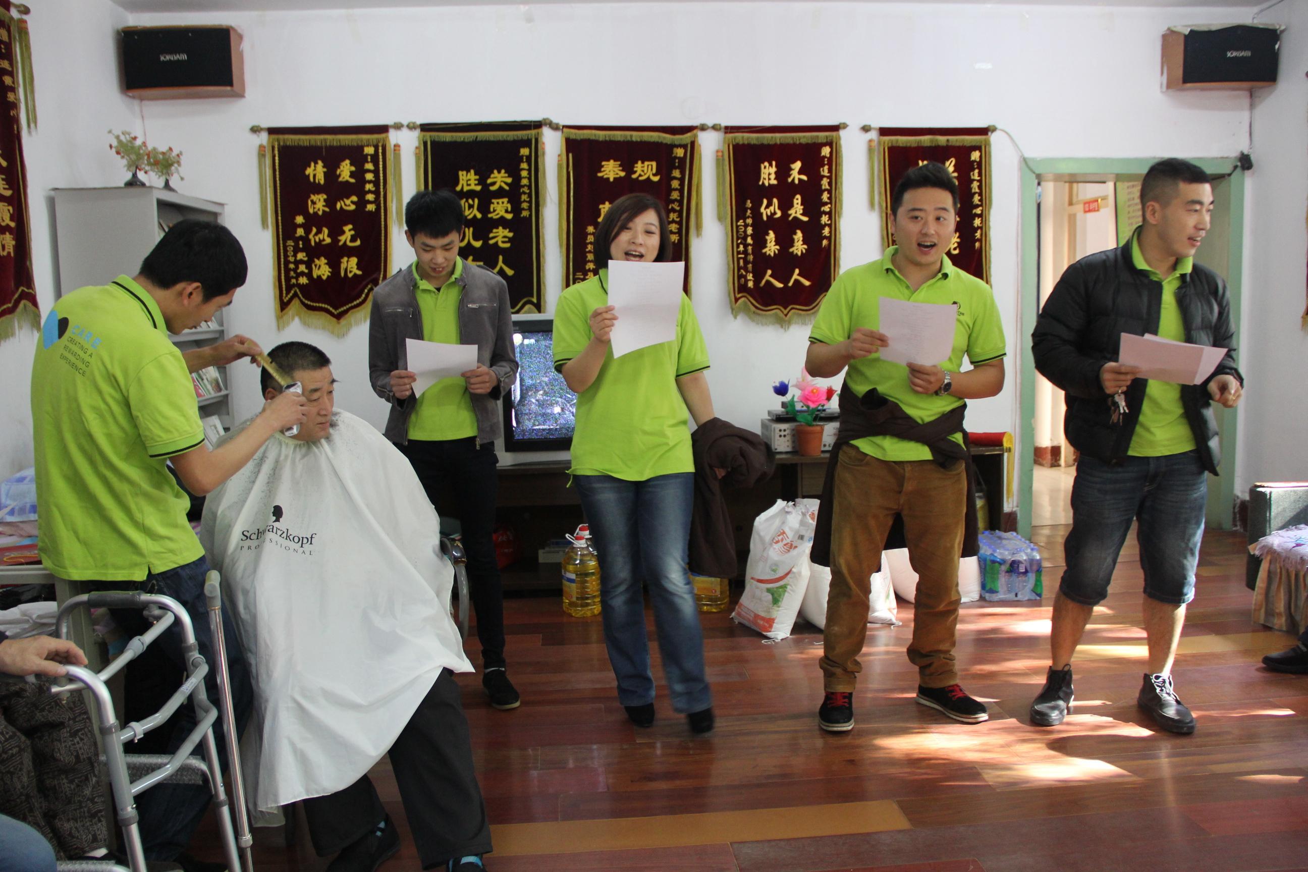 關愛委員會不僅為老人們準備了白面和油,還準備了餡料和面皮為老人們包了一頓豐盛的餃子。希望老人們在重陽節之際品嘗到希爾頓逸林的愛心大餐。成員們與老人們親切互動,聊天談心,更邀請老人們一同互動唱歌,為他們帶去了平日里少有的輕松歡快氣氛。除此之外,委員會成員設身處地為老人們著想,邀請酒店高級理發師為老人們理發,得到了老人們的高度評價。委員會成員真正從老人們的實際生活出發,盡較大努力在最短時間內讓老人們感受到“關愛”的溫暖,老人們與成員們渡過歡樂時光,飽含對委員會的感激之情和感謝之意。
