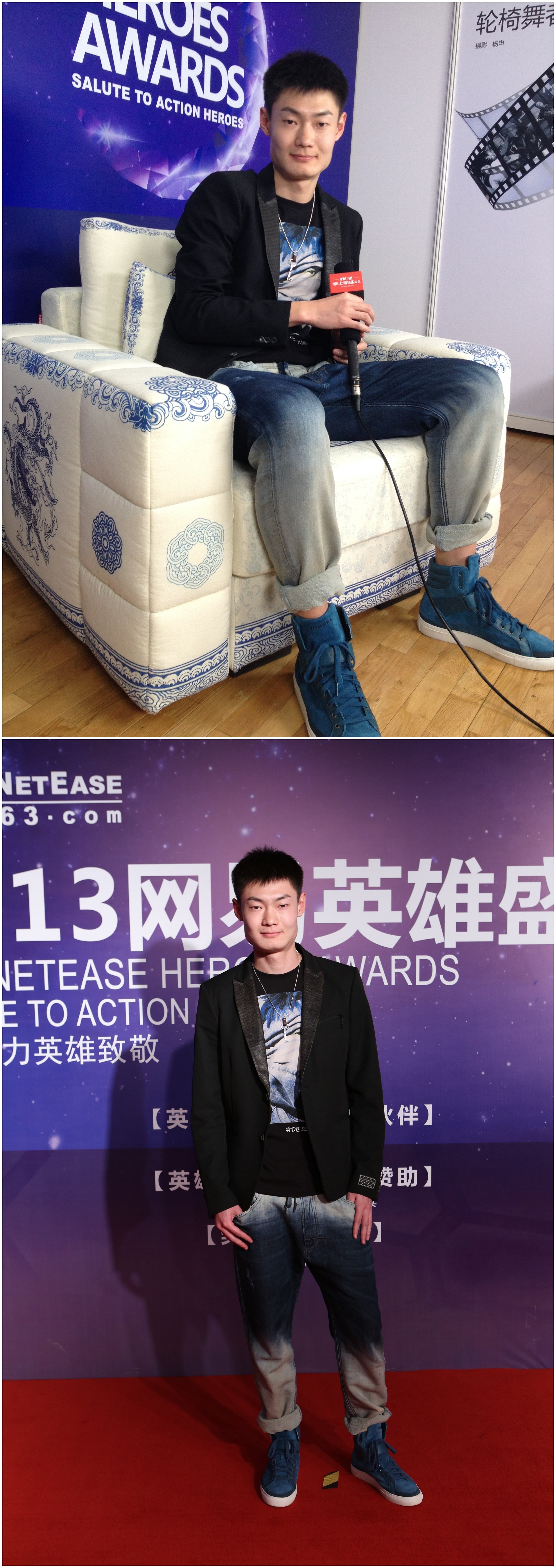 短跑冠軍張培萌著全套DIESEL 2013秋冬系列亮相“2013英雄盛典”并接受媒體采訪