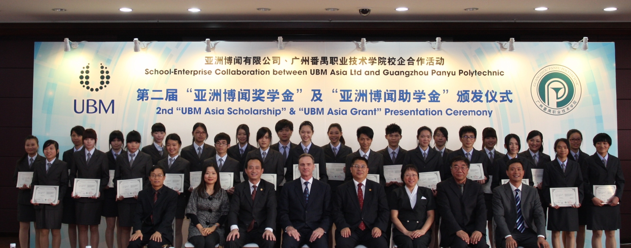 第二屆亞洲博聞獎學金及助學金頒發儀式于2013年12月6日在廣州番禺職業技術學院圓滿舉行。亞洲博聞高級副總裁狄沃夫先生、亞洲博聞珠寶業務拓展總監周美麗女士、博聞(廣州)展覽有限公司總經理葉韻貞女士、廣州番禺職業技術學院校長張連緒教授、校長助理李大云先生、珠寶學院院長王昶先生、副院長袁軍平教授及學院黨總支副書記劉文明先生出席活動,并由狄沃夫先生及張教授頒發獎學金、助學金予26名獲獎學生。