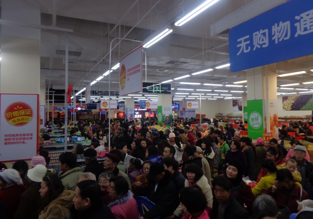 沃爾瑪云南昆明昌源中路店盛大開業,商場內人頭涌涌,工作人員馬不停蹄